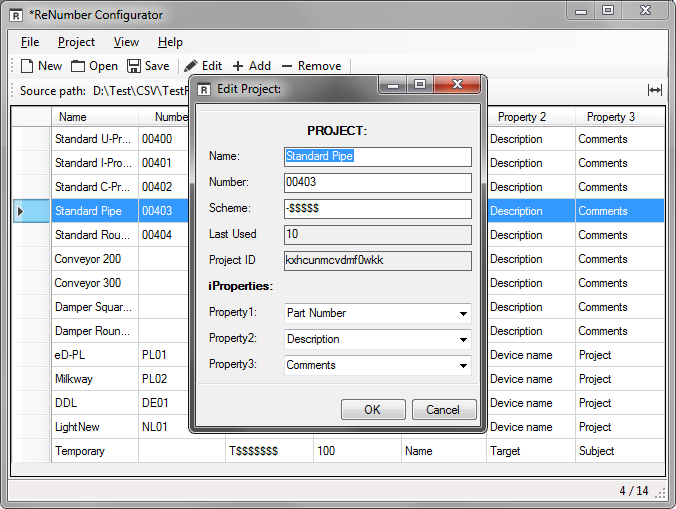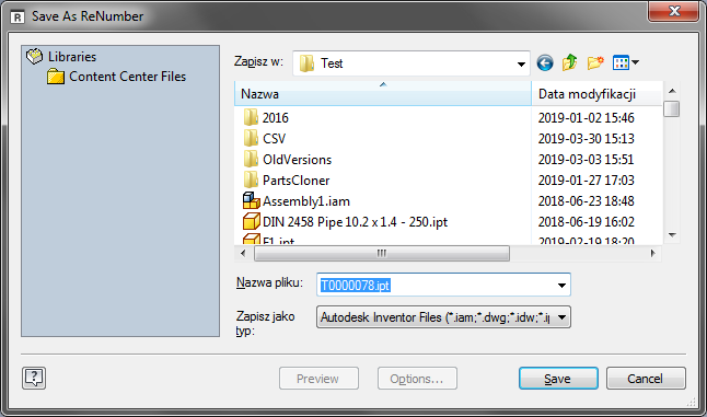 2. Select the path to a previously created file in the settings of ReNumber (inside the Autodesk® Inventor®)