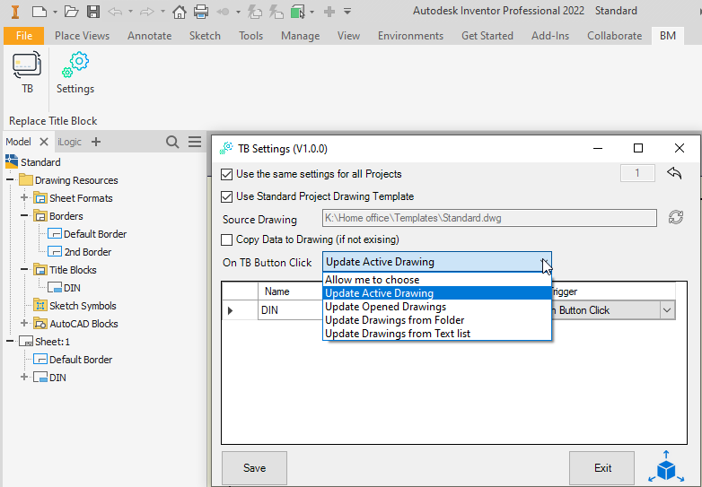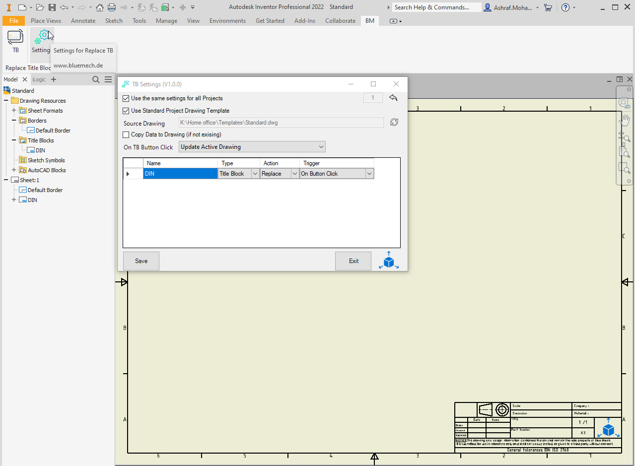 Title Block Replacement will help Autodesk® Inventor® users to easily update/Replace Title Blocks and Borders.
