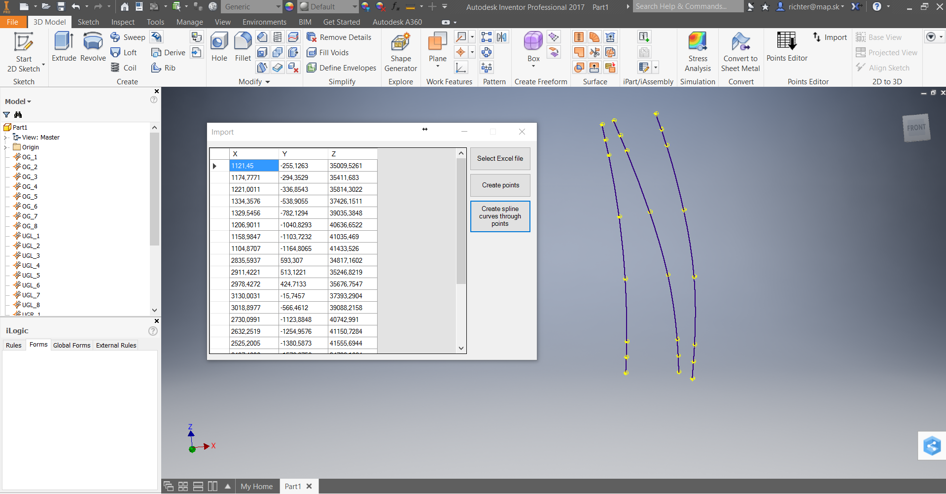 - Import workpoints coordinates from Excel