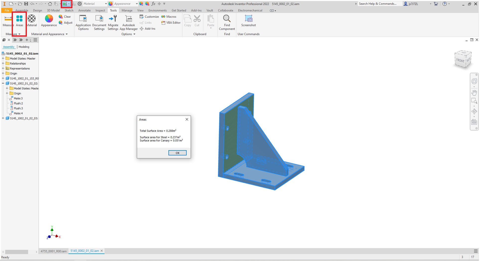 Areas add in allows you to quickly calculate surface areas of parts and assemblies.