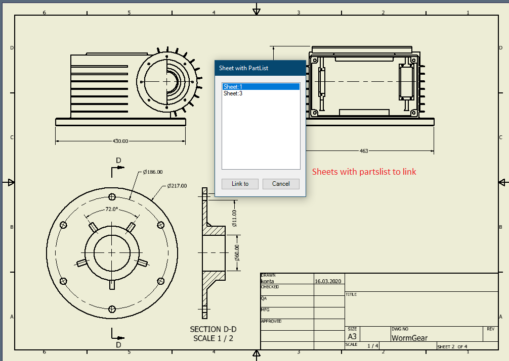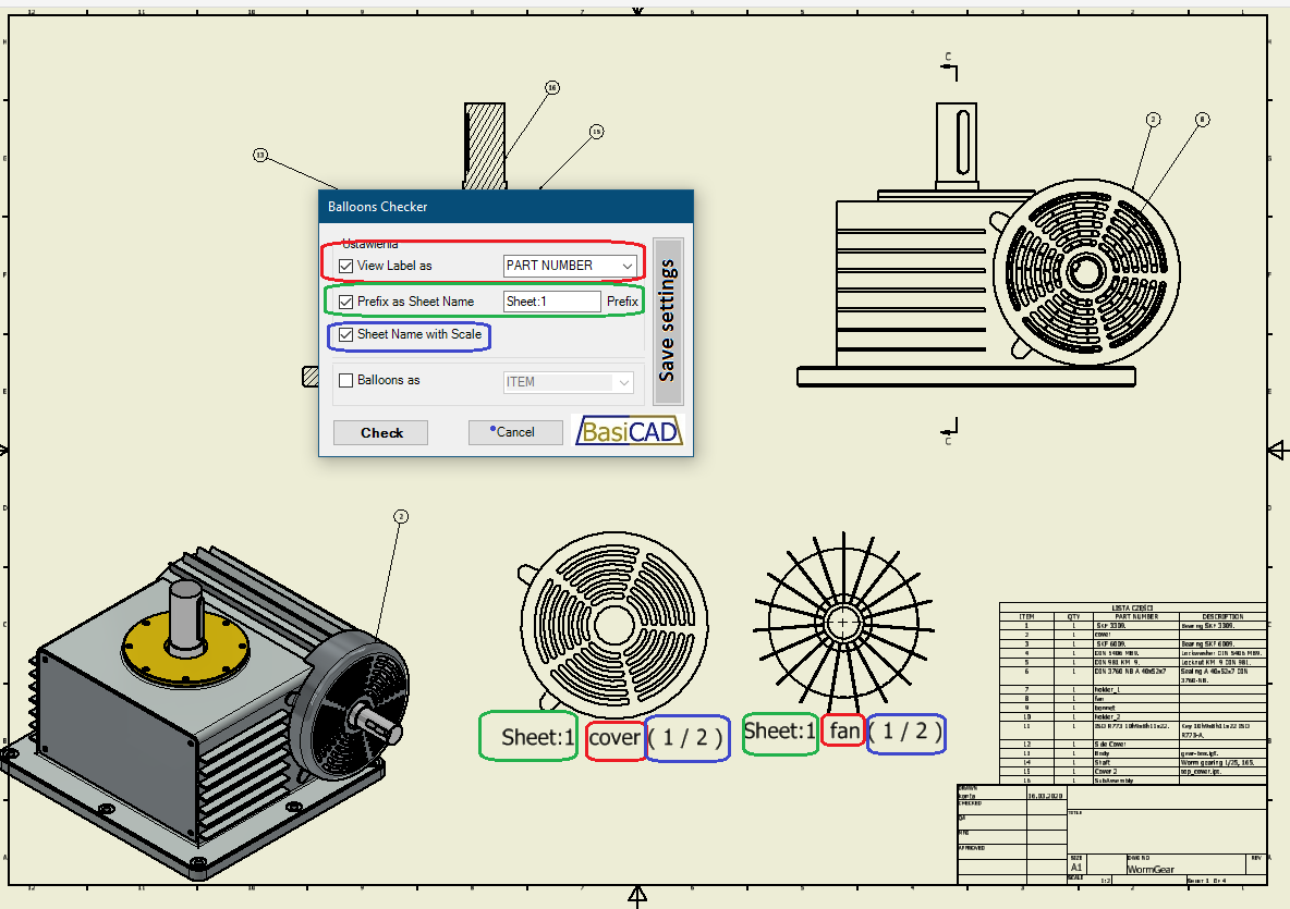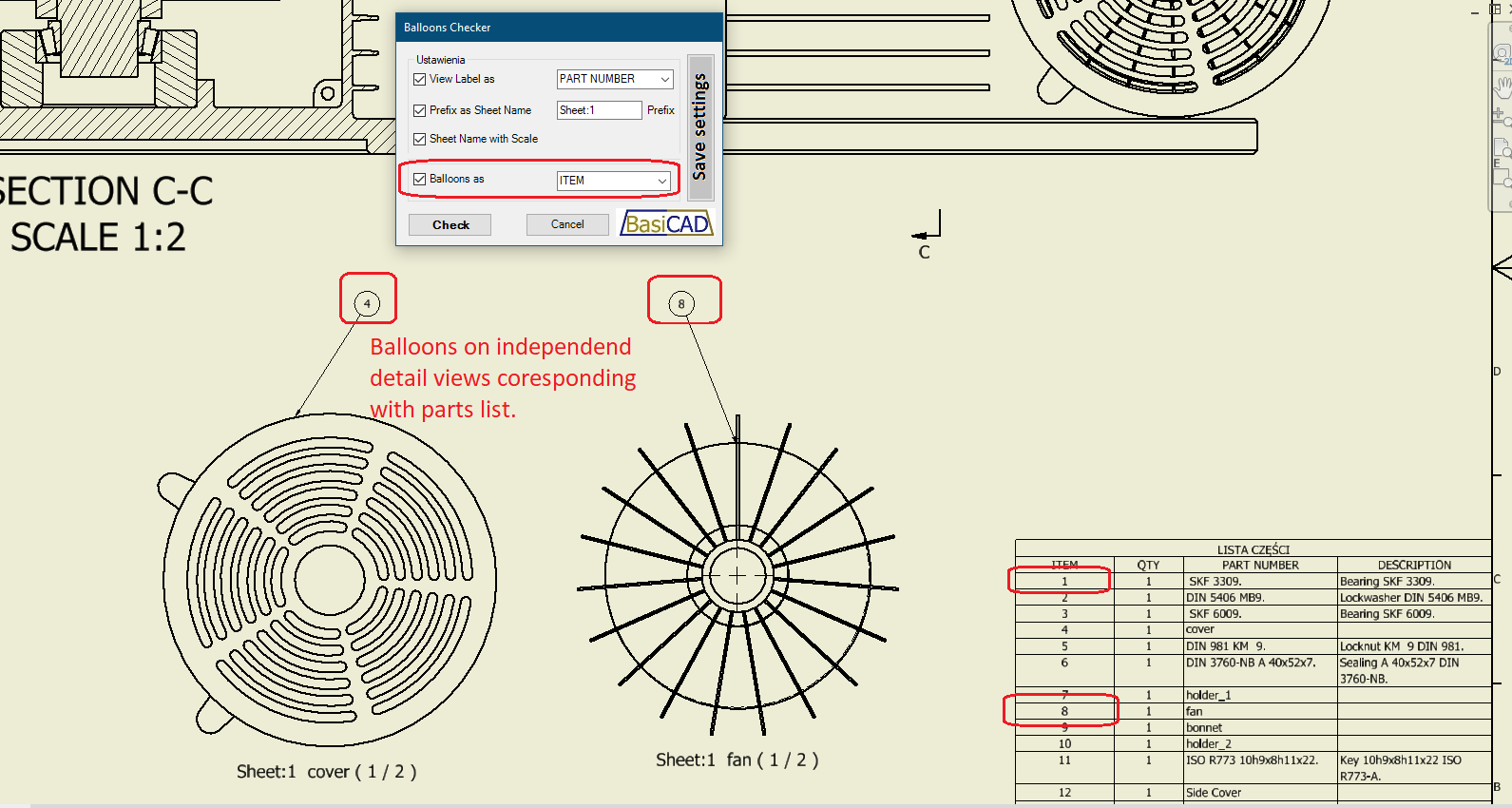 Thanks to this, each view of any component inserted in the assembly drawing will have the correct number compatible with the assembly parts list.