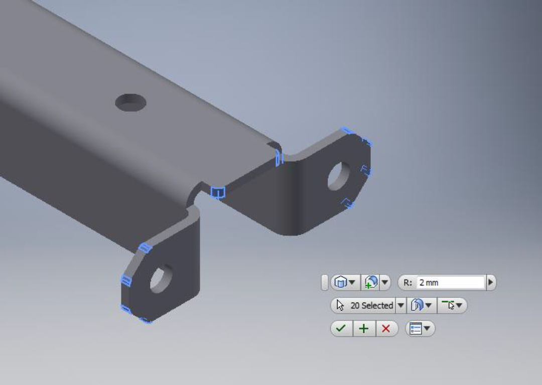 When the user click on the button “Remove Corners”, it will select the external edges and launches the UI to set radius. User can set the radius needed for fillet. Important aspect of the addin is that it distinguishes the internal edges with external edges. And only enables external edges to set the fillet.