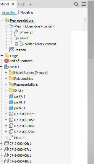 It will create a view named: 'hidden library content' and hide all library components in the assembly. If it finds a view named 'hidden library content' inside any sub-occurrence it will set its representation to this view.