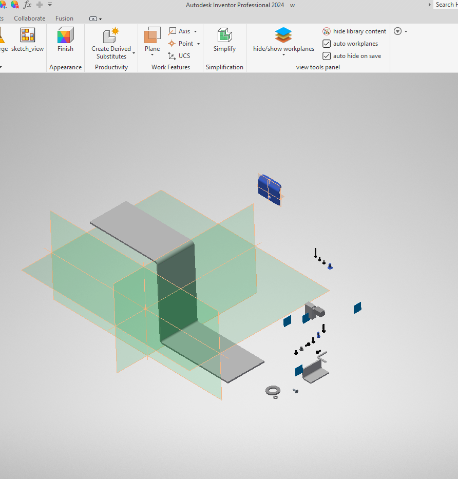 Auto show/hide work planes button checked - start placing constraints, work planes in components will be shown after you move the mouse pointer over it - library components will be excluded.