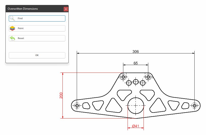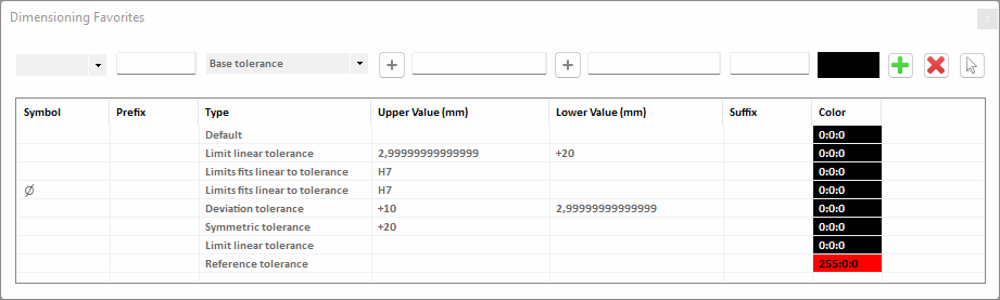 Recurring dimension specifications such as tolerances, fits, dimensions, diameters, or special characters are configured once and can then be retrieved again and again and easily managed. In the inking mode, text can be highlighted in color; e.g. as a special note for the production.