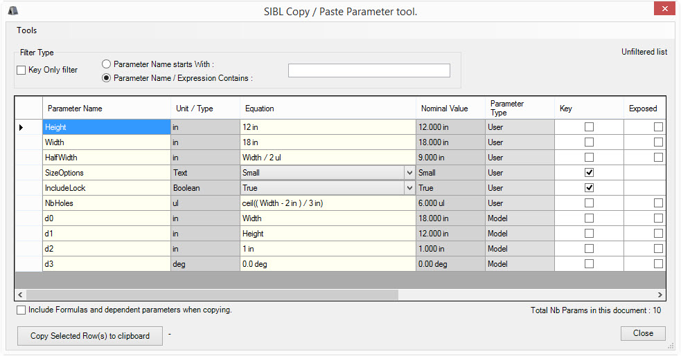 You can copy Text, Boolean and also Multi Value parameters. You can also include parameter with equation.