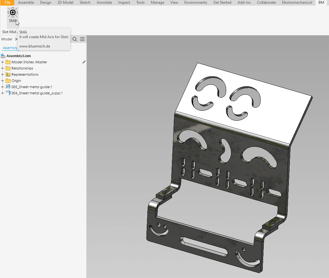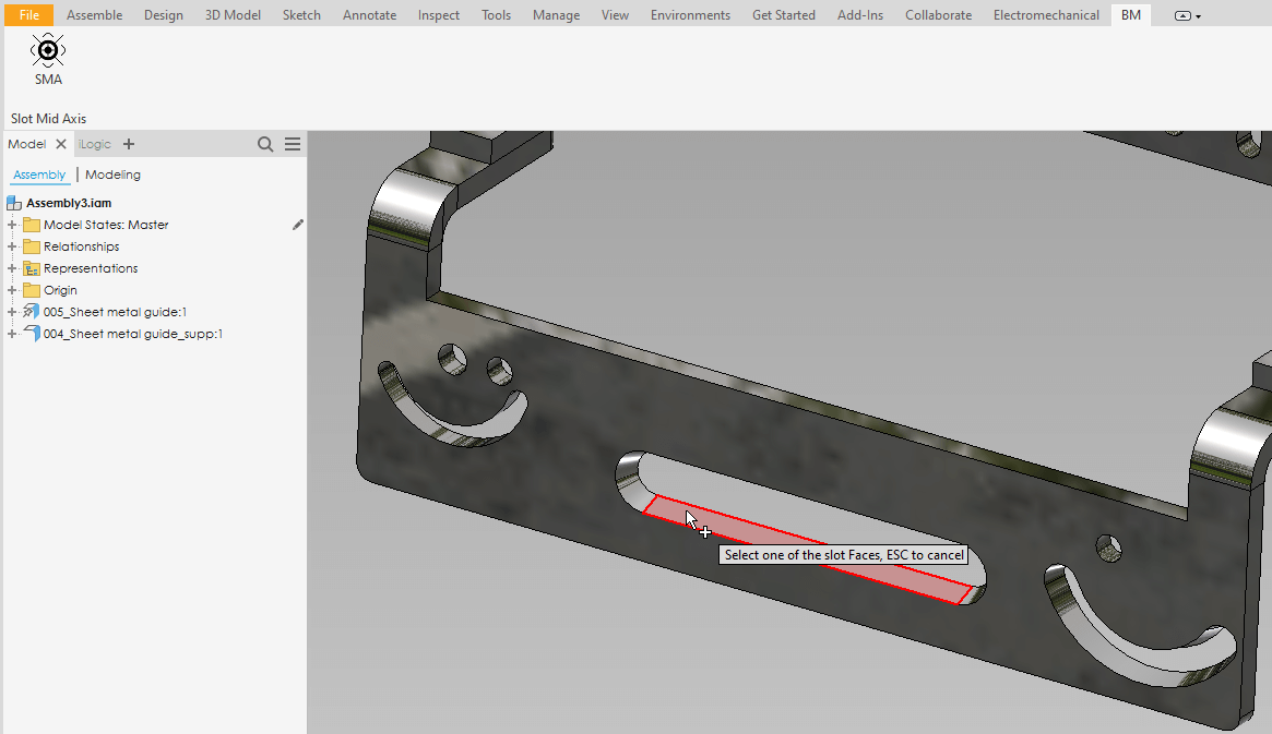 SMA (Slot Mid-Axis) is an add-in for Autodesk® Inventor®. it helps the users to quickly and efficiently create Center Axes for Slots, saving you a lot of time and effort.