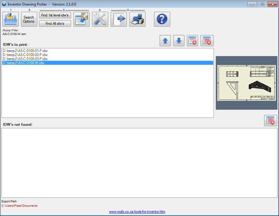 Drawing Porter is a batch print and export tool for Autodesk® Inventor®. What makes it unique is that its Assembly focussed or based and that it will determine which drawings and parts are relevant based on the single assembly file you select.