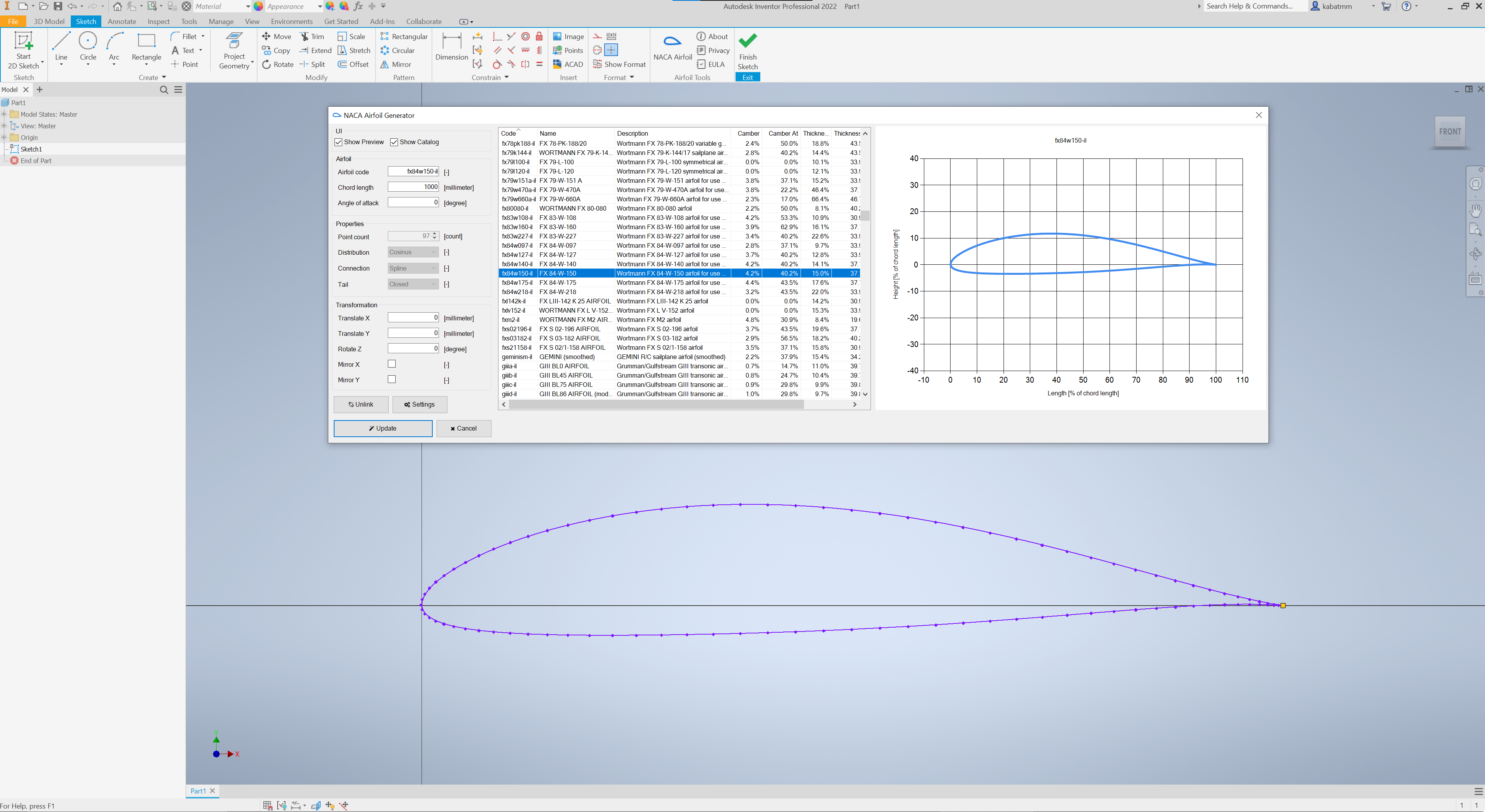 Airfoil Generator is an add-in for Autodesk® Inventor® which allows the user to generate Airfoil directly to the 2D Sketch and update the existing Airfoil.