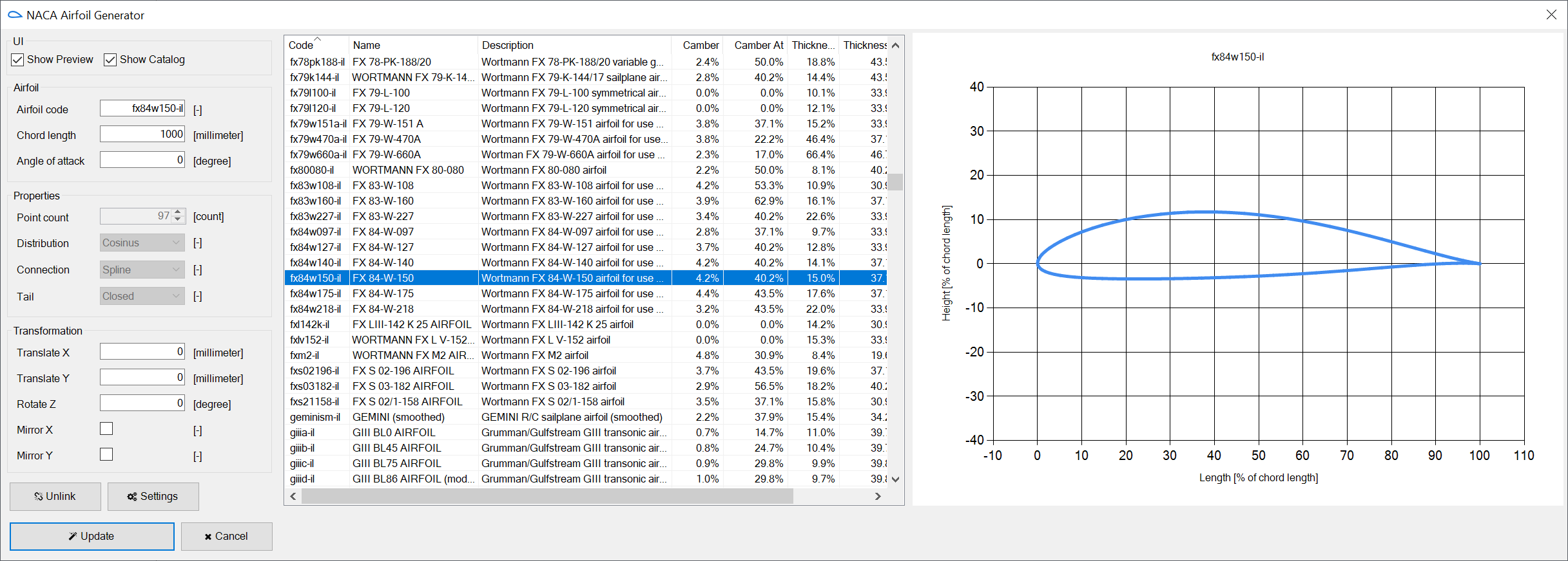 Use huge catalog with more like 1600 most popular Airfoils with predefined points