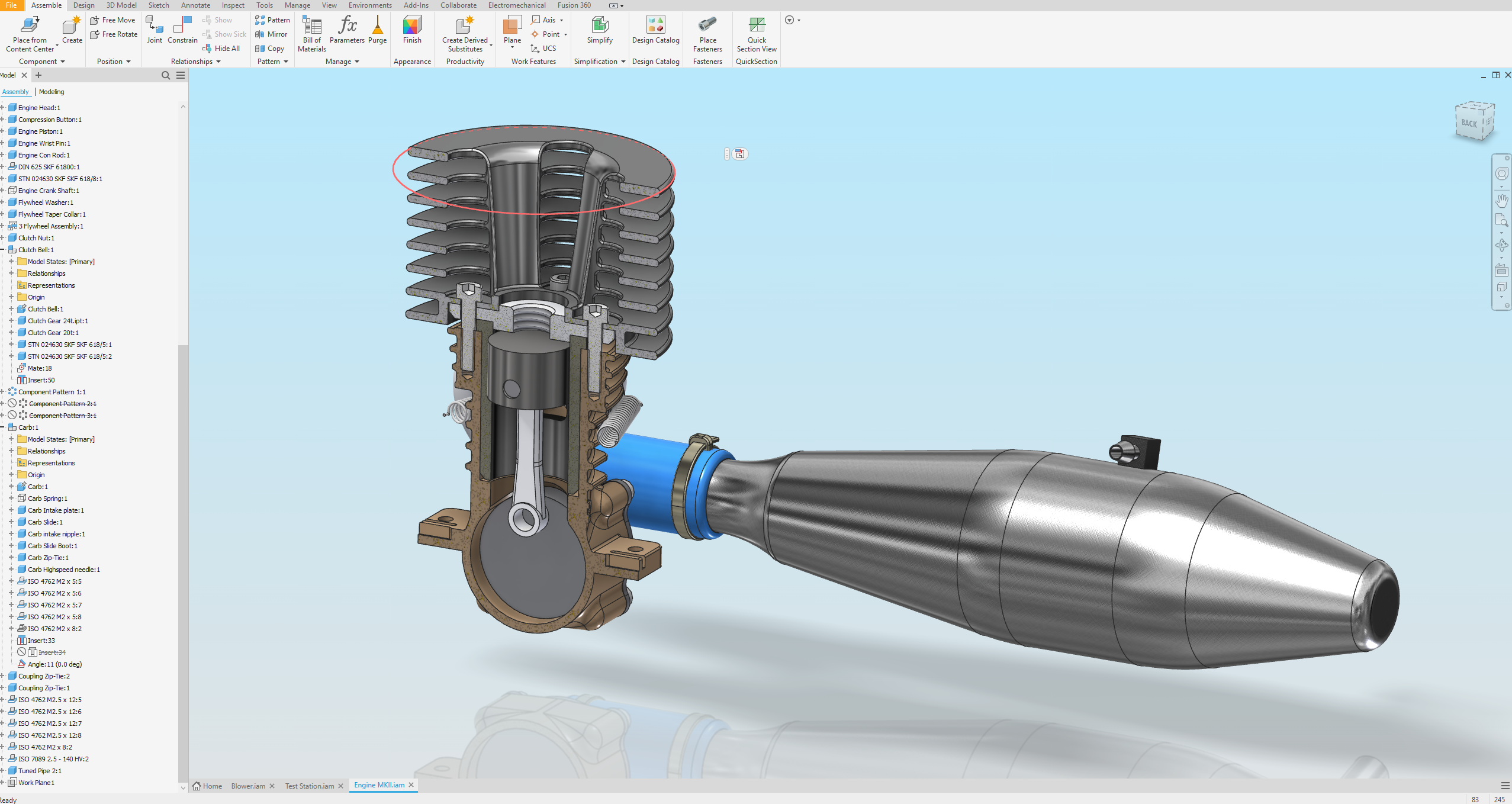 - Select a part or assembly occurrence to create a section view through its origin workplane