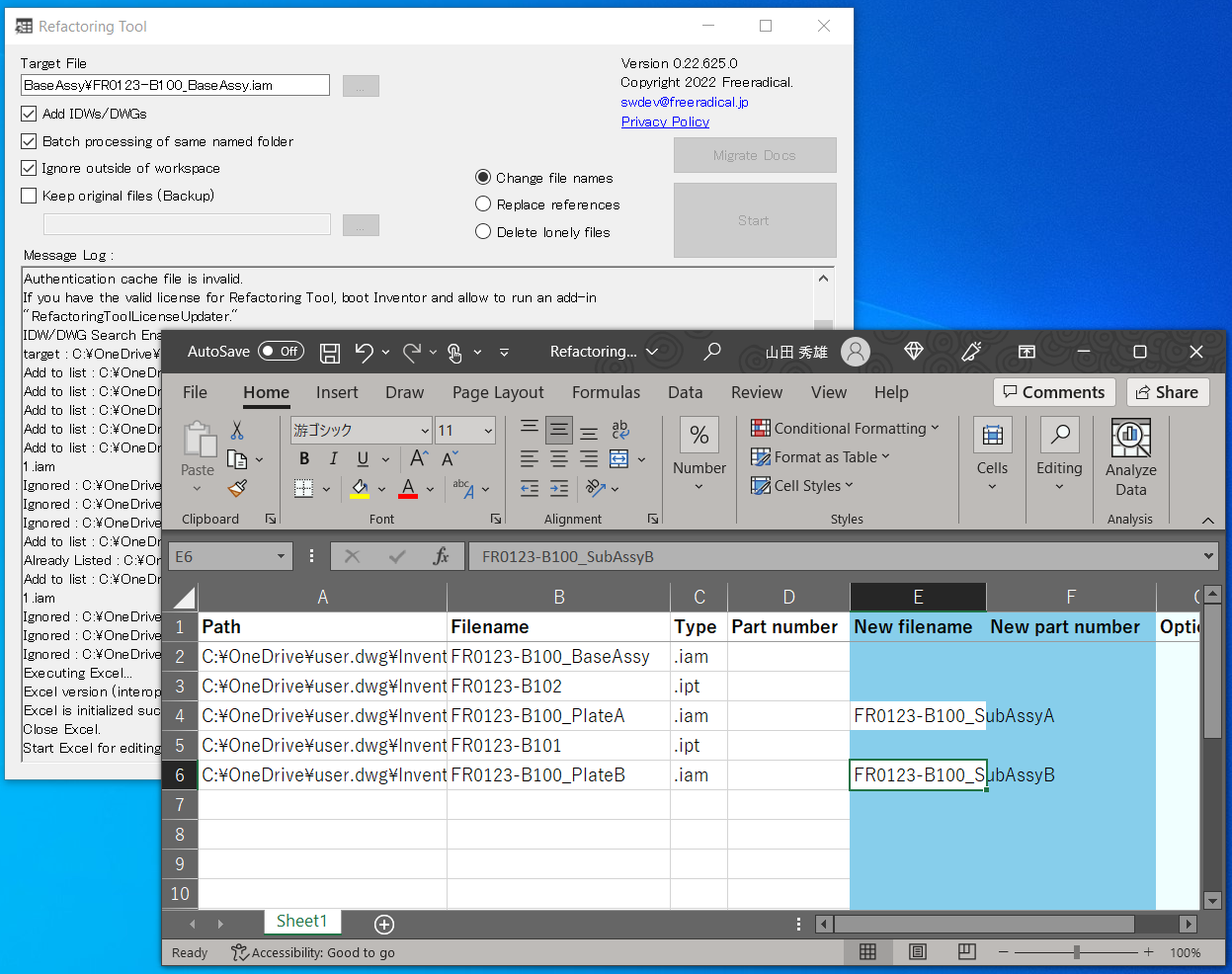 (1) [Change file names]: Filename and/or part number of files will be changed. The references of another file that are referencing to the renamed file are also updated if necessary.