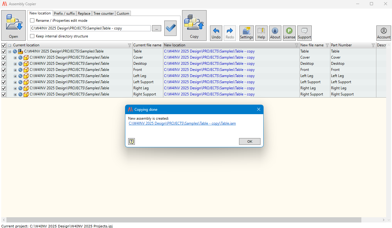 The hierarchical encoding feature makes Assembly Copier's copying capabilities distinct from similar features in other Inventor products. This function recodes the components of the item and easily identifies to which product the part belongs and the assembly level it is at.