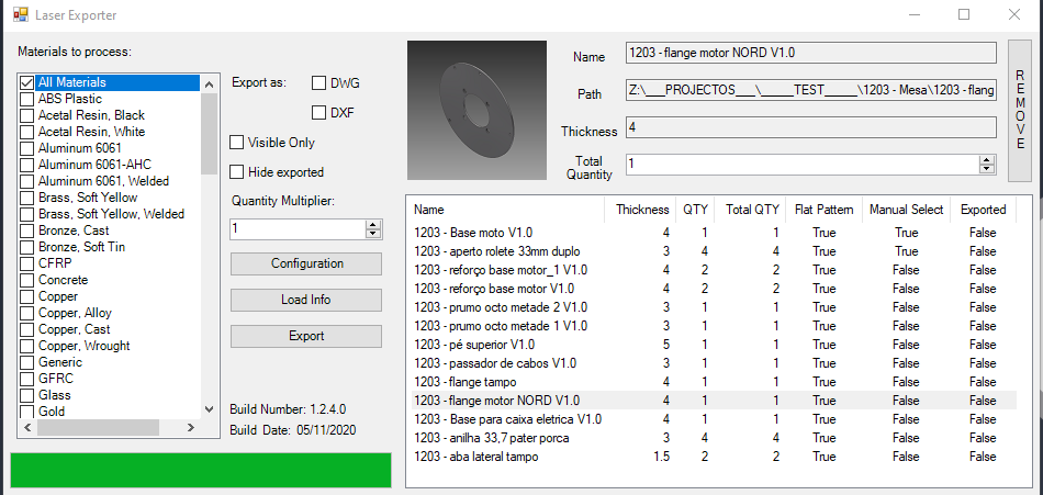 Press Load Info to load all the sheert metal info for each file