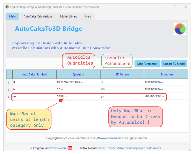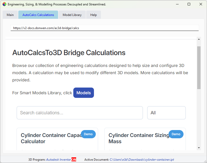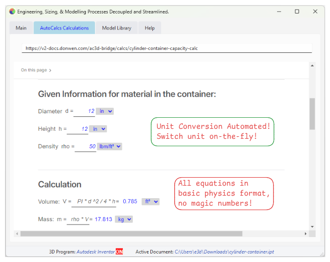 AutoCalcsTo3D Bridge is an innovative solution that seamlessly integrates Autodesk® Inventor® with AutoCalcs' powerful calculation capabilities, thus streamlining engineering and modeling tasks. This bridge enhances Inventor's parametric modeling by connecting it to versatile multi-step calculations featuring automated unit conversion.