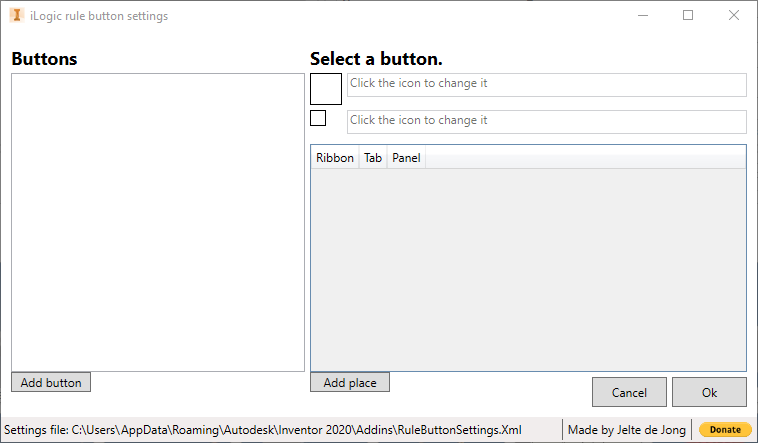 Applicazione molto facile da usare per trasformare le regole esterne (I-Logic, VBA, VB) in bottoni da poter inserire nelle task di Inventor.