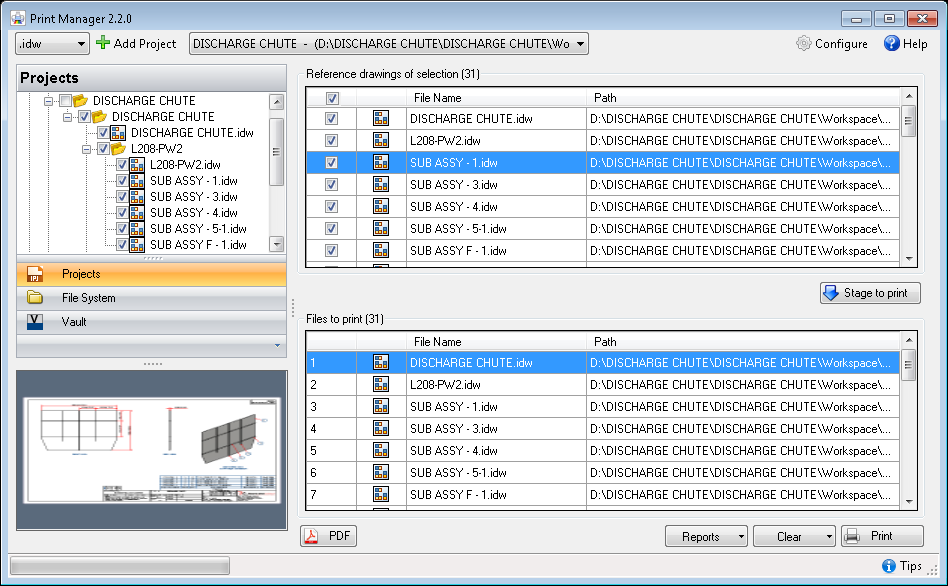 Print Manager automates the process of printing multiple Autodesk® Inventor® drawing files.