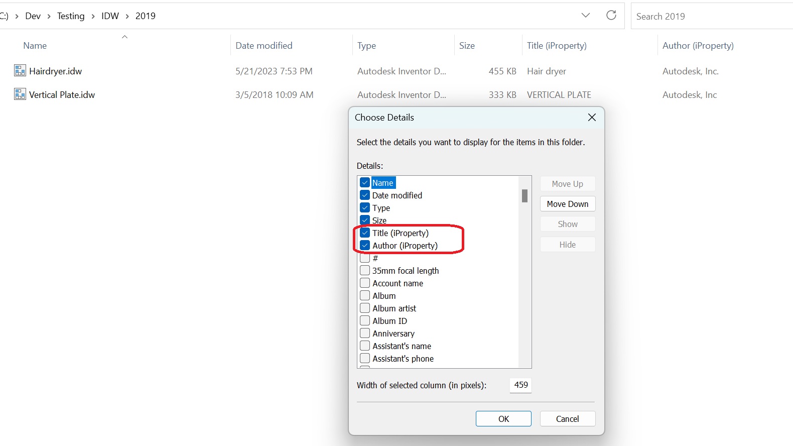 I had enabled the Description iProperty for DWG, IPT, and IAM. I was confused why there would be multiple Description columns when viewed in File Explorer. It would be better if a single column could be used rather than a DWG Description column, an IPT Desc column, and an IAM Desc column.
