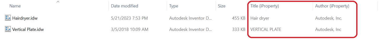 An add-in for Autodesk® Inventor® iProperty Handler allows Inventor iProperties to be displayed as columns in Windows Explorer.