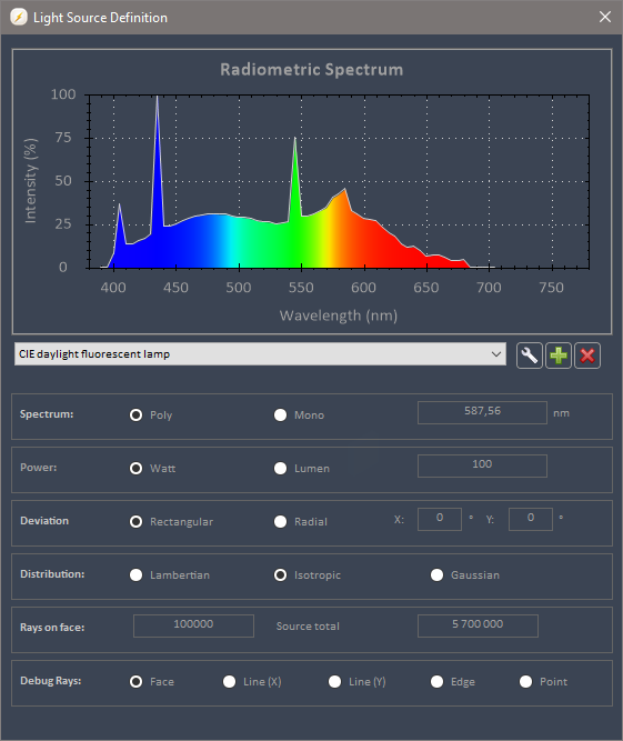 Optical assembly designs created with LambdaSpect's design assistant are capable of simulating the interaction of light emitted by LambdaSpect light source components with a wide selection of optical components such as prisms, mirrors or filters.