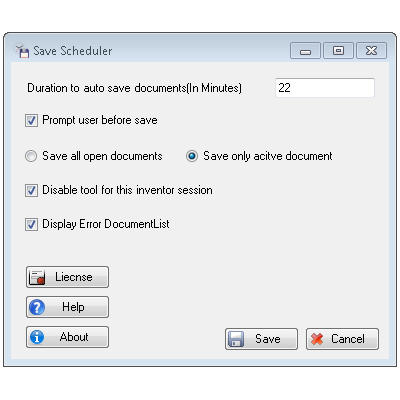 The tool helps to remind the user to save the work as per the scheduled timeline. It also performs an automatic save action. The user can select whether he wants to automatically save the work or to prompt for saving.
