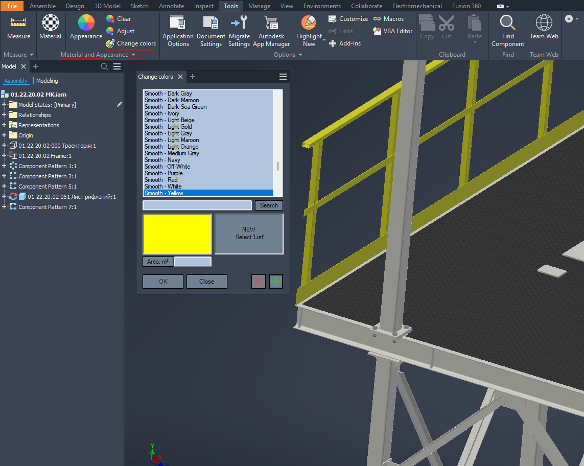 Changing the color and calculating the area is not performed with parts that are in the Content Center.