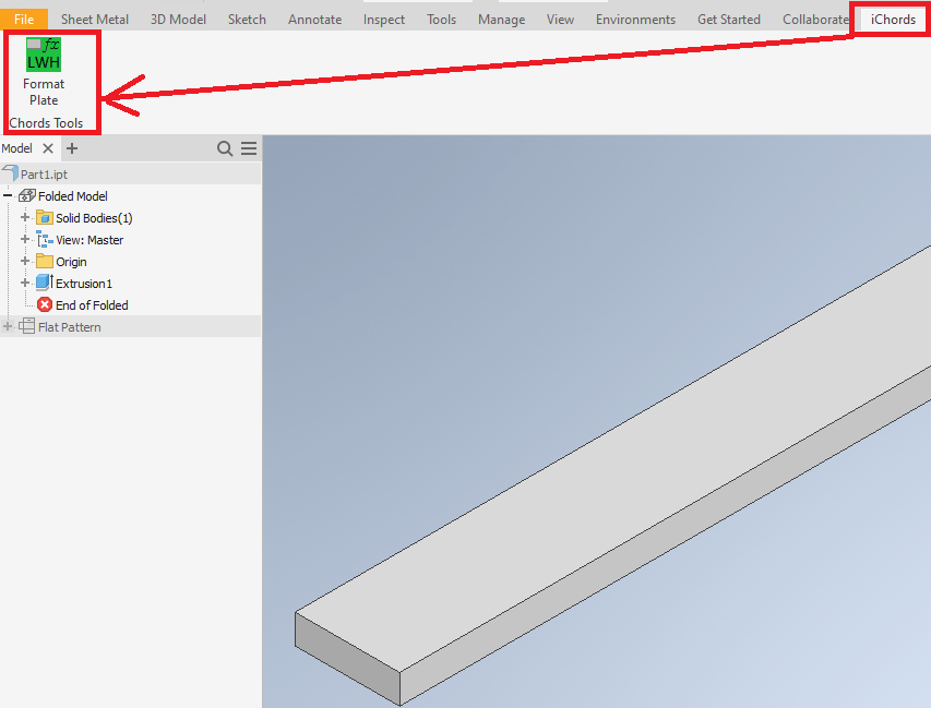 iChords - Plate Formatter can format a plate part to link internal size parameters to the custom size properties, stock number and description. Unify bend radius with custom rules. The size information in the material list will update automatically if the option "convert to sheet metal" is checked.