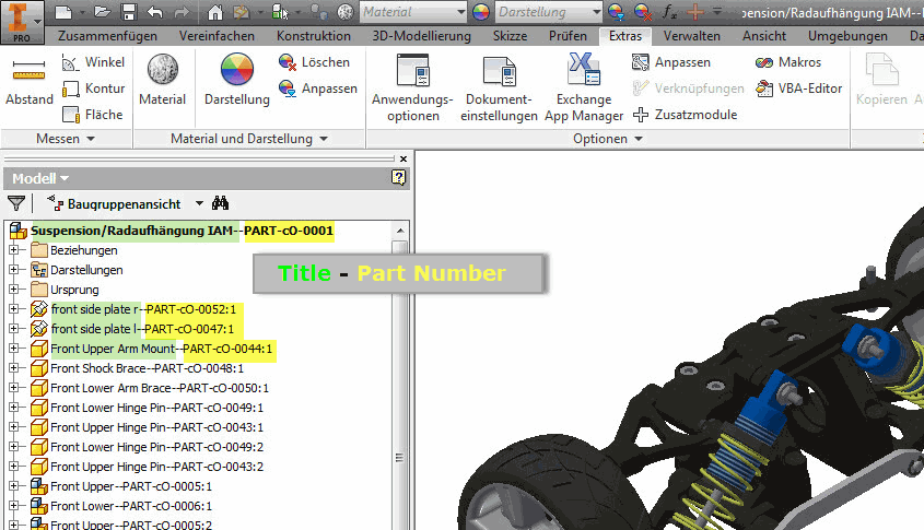 - The default setting for the browser node is the combination of the iProperty 'Title' and 'Part Number'