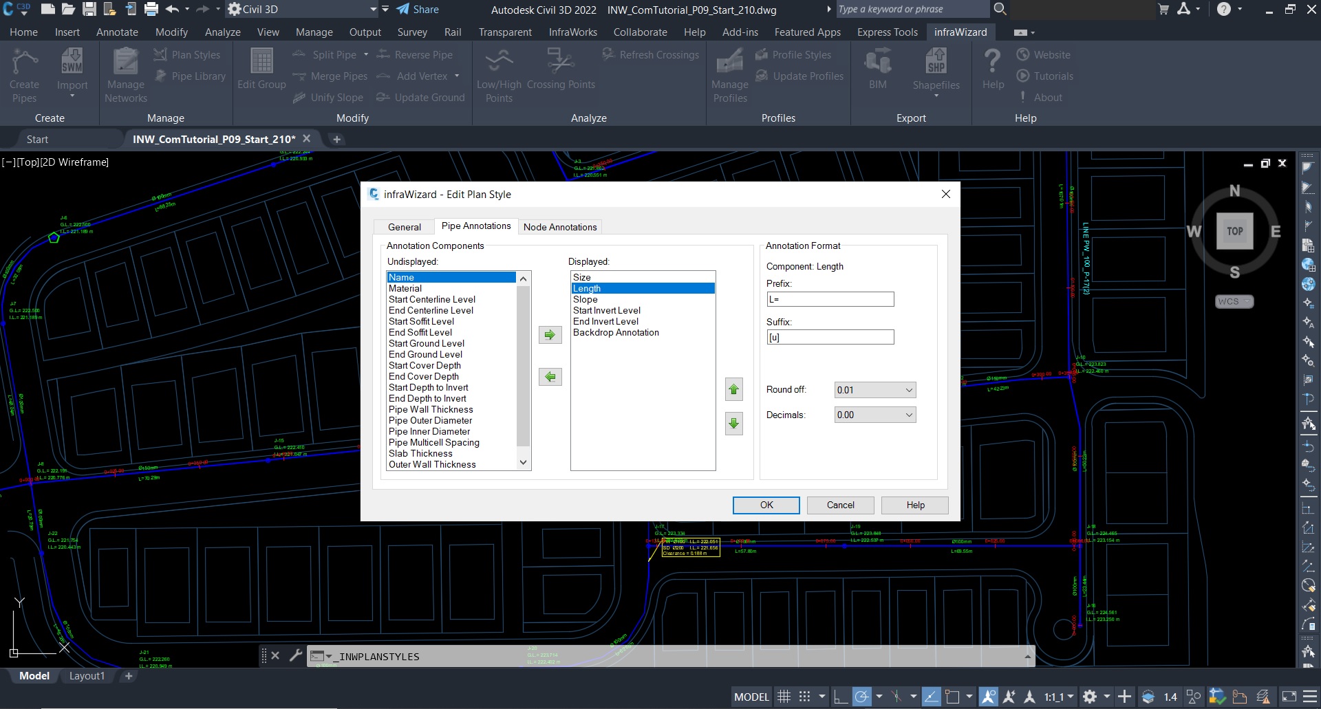 - Use plan styles to format network plans and add annotations to pipes and nodes.
