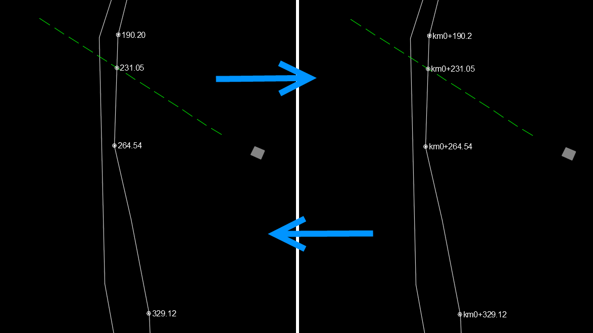 The KILOMETRICA command transforms the numerical content of the texts or attributes of a block into kilometer notation, i.e. a representation of the distance in the format with the prefix "km", then the kilometer number then meters.