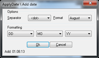 - ADAF - 'Format' window, in this window user can select predefined format date,