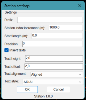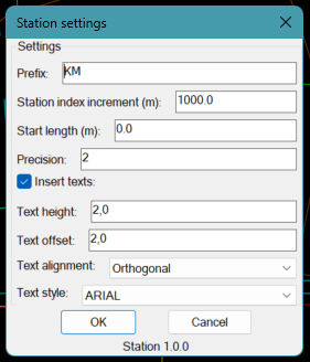 - Prefix: Define a prefix to include in the station label (default is "KM").