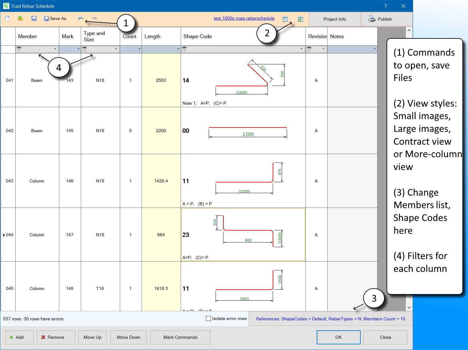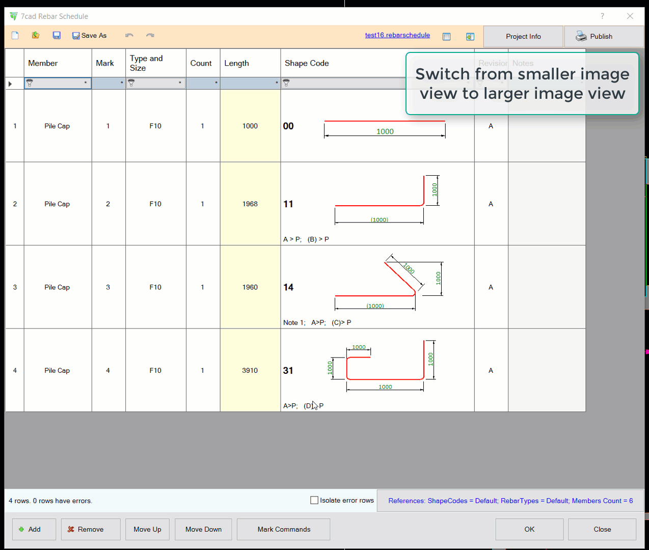 7cad Rebar Shape Codes editor is for you to edit or create your shape codes. For the time being, the unit supported is metric only.