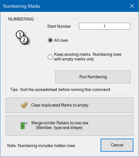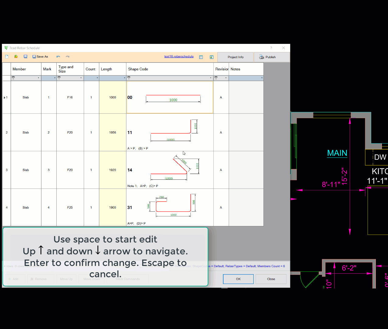 For member cells and rebar type cells, a similar UI is built in: use a mouse click, or type any key, and a menu of members or rebar types will bring up for you to select at your fingertips.