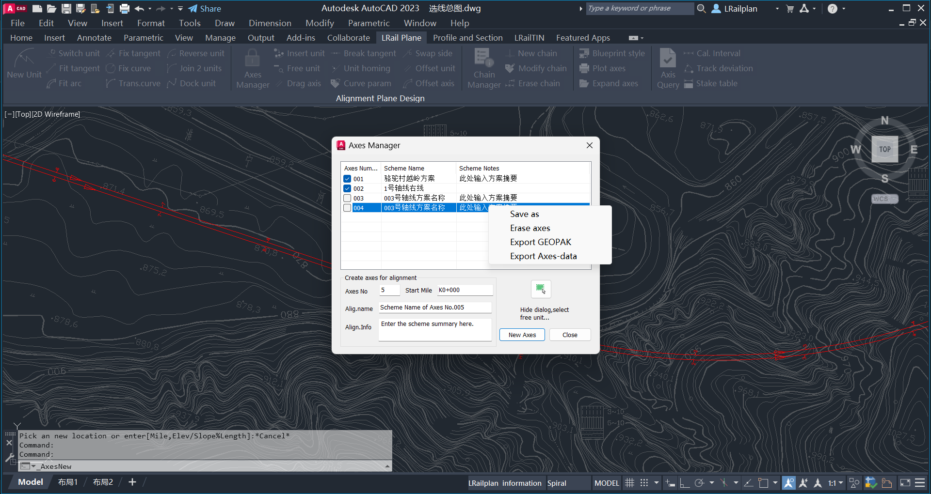LRailplan is a professional railway route design software that provides the complete and structured project process, from roadway plane alignment to profile design. Axis alignment and profile management enable designers to manage complex schemes in an organized manner. The system allows for quick, seamless handovers among team members.