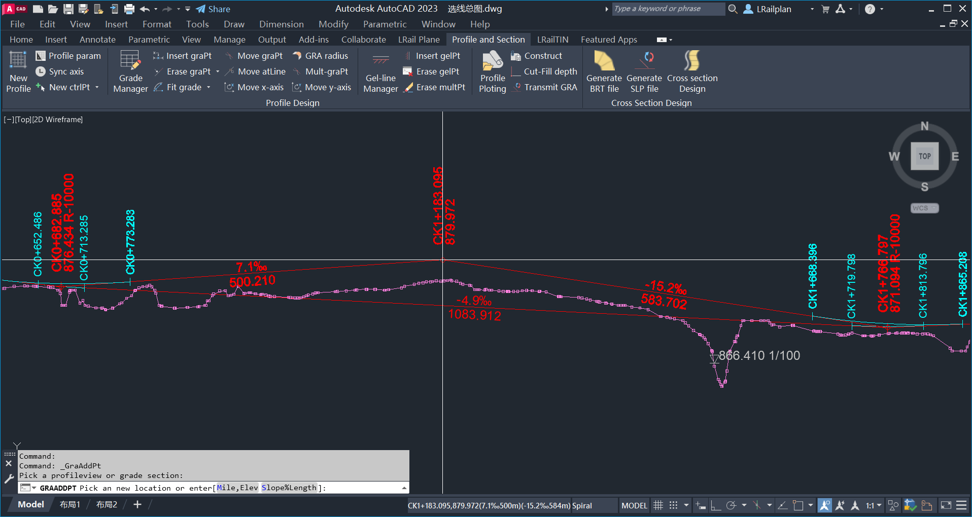 With the integrated architecture of existing railway reconstruction and new railway design, the system uses the existing railway track shape measurement point data (GPS/Beidou/TS) and automatically fits the alignment plane unit and profile gradient section in the graphic environment. The functions of spiral curve inversion, unit positioning, and fine adjustment of gradient point are used to accurately complete the rapid recovery of the existing railway plane and profile. The functions can also be used for the rapid fitting and reconstruction of the as-built route of the plane and grade of the subway.
