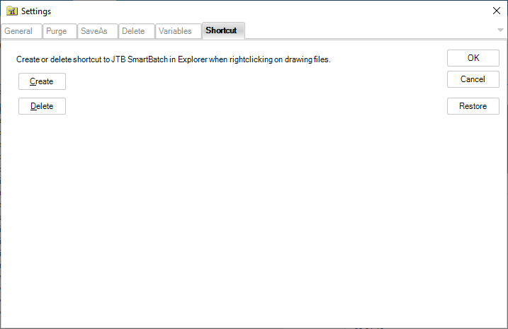JTB SmartBatch (aka SmartPurger) is a batch and script utility for processing multiple Autodesk® AutoCAD® drawings with full control. Execute LSP or SCR files on multiple drawings. JTB SmartBatch handles crashes so the batch processing continues to the end and leaves bad drawings to be corrected manually. Many purges and cleanup settings are available. Useful before backups and distribution of drawings. The file's modified time stamp can be restored.