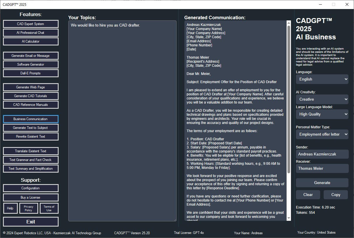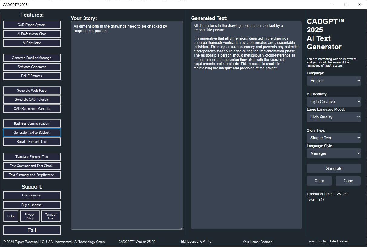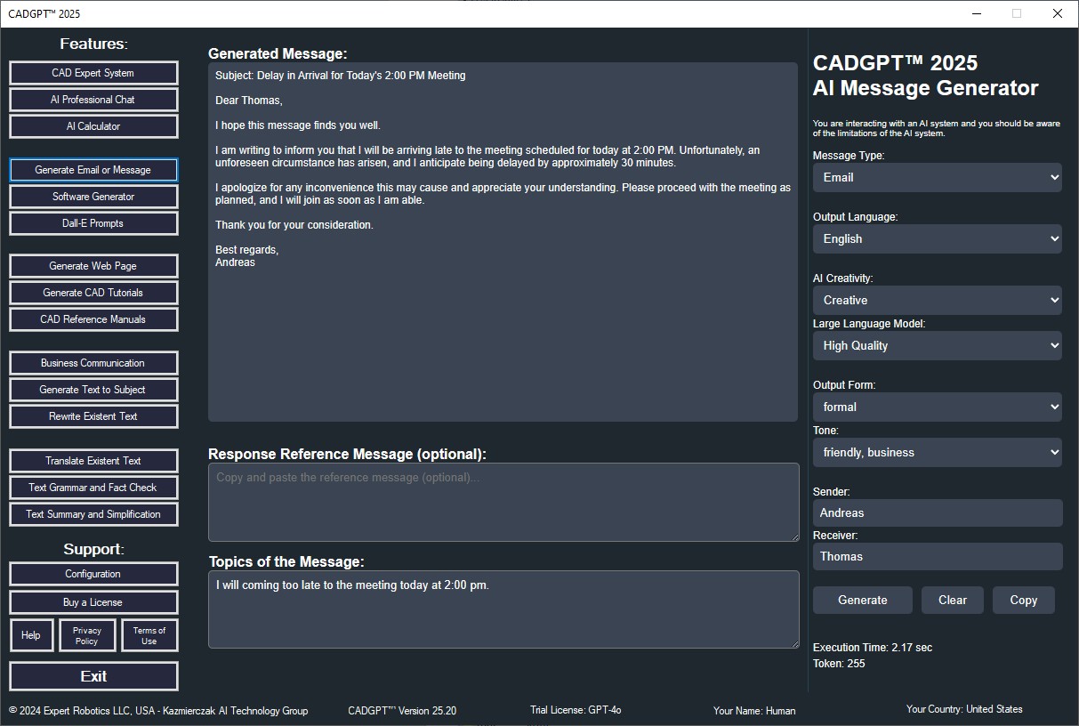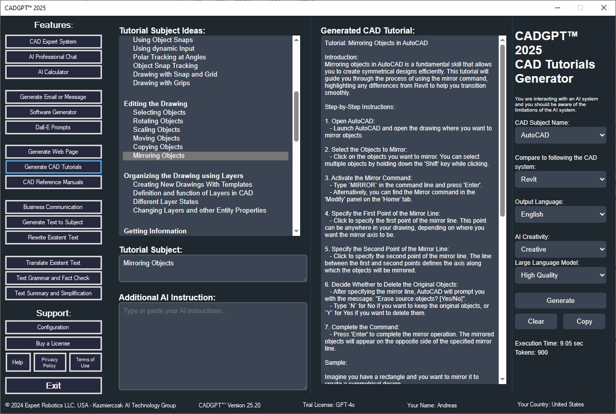 If you encounter any issues with Autodesk® AutoCAD® or need assistance finding a variable or command, or if you require help with email composition, simply utilize our CADGPT 2025.
