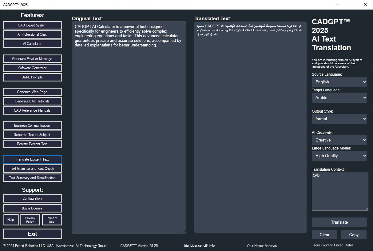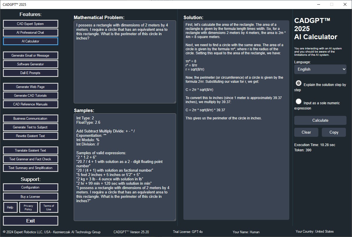CADGPT 2025 - Artificial Intelligence Assistant for all CAD-related tasks and design work. Powered by ChatGPT and Expert Robotics Tools. Features include an AI Calculator, AI Text Generator, ObjectARX and LISP code Generator, CAD Emails Generator, and 24/7 CAD Support.
