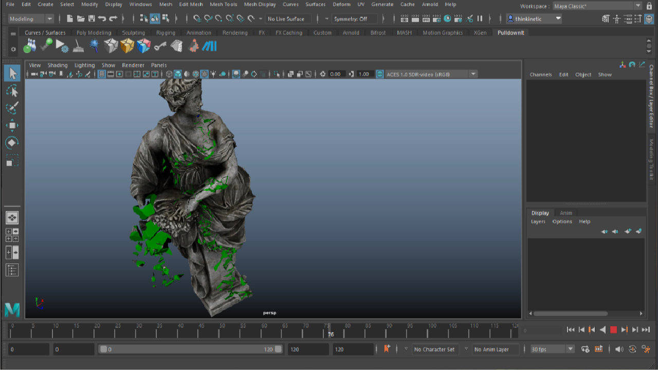 Pulldownit is a dynamics plugin intended for destruction effects as well as massive rigid bodies simulations. By using it, digital artists are able to shatter objects in different styles, create surface cracks and easily animate the fracture of 3D models. The power of the Pulldownit solver allows computing thousands of objects in dynamics in a stable and realistic way.