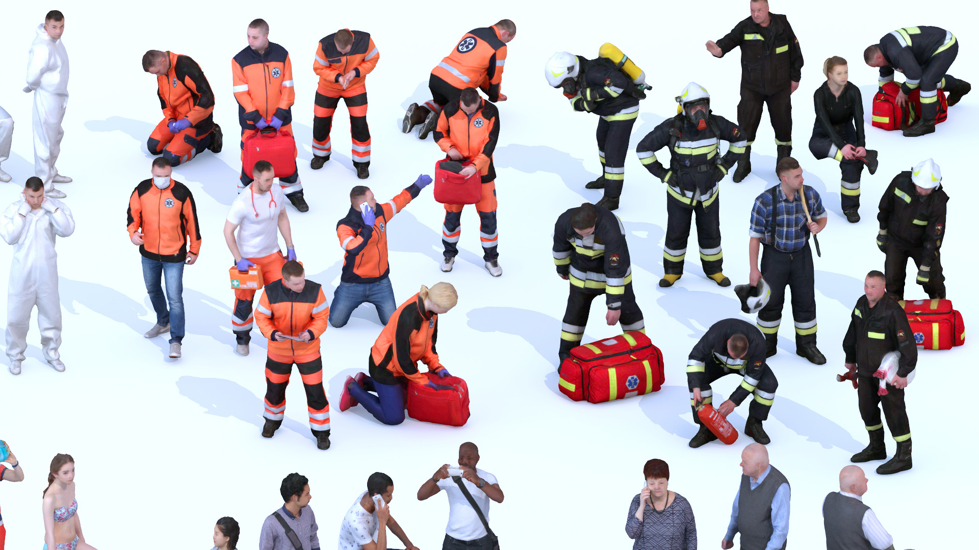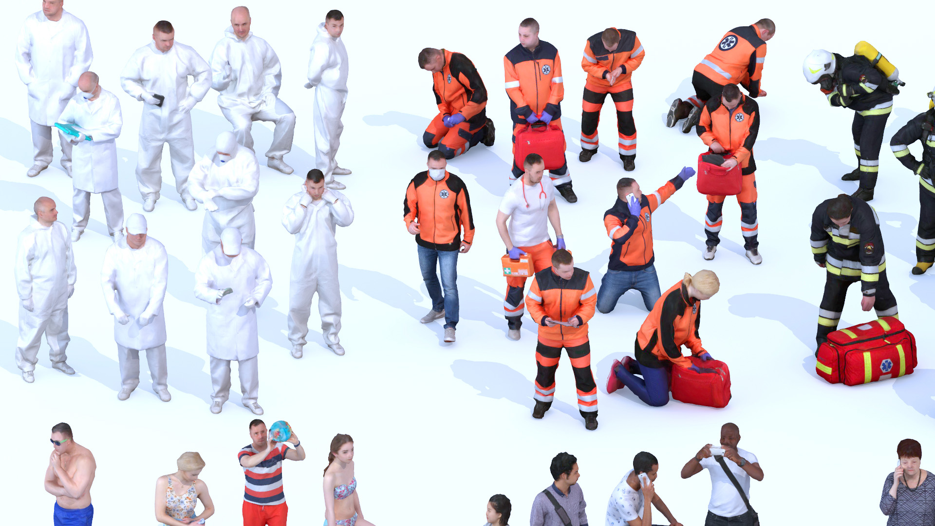 The product DOSCH 3D: Lo-Poly People Vol. 2 contains 100 fully textured lo-poly 3D-models (10,000 polygons per 3D-model) of photo-real people in various poses.