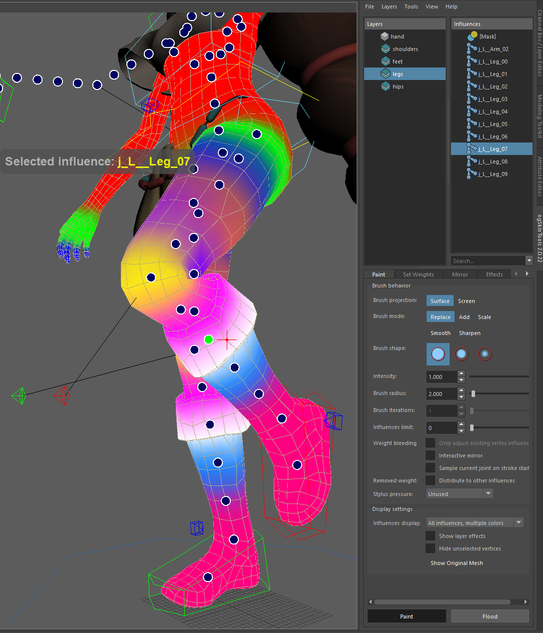 Just like in the previous version, ngSkinTools brings its own weight painting tools. Improving viewport experience is the main focus of V2, and it's a complete revamp over the previous implementation.
