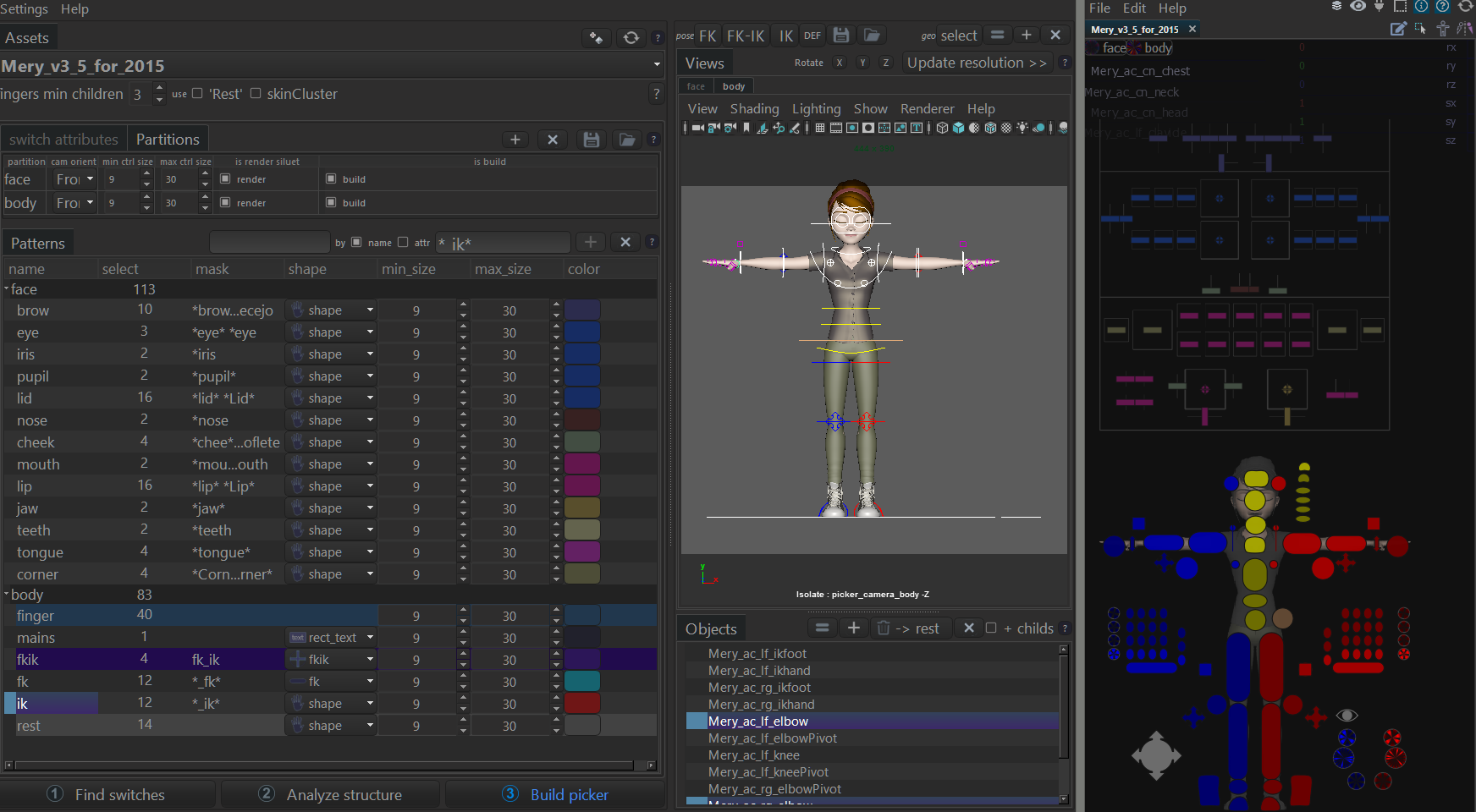 Picker Builder is a python script for Autodesk® Maya®, which allows to maximally automate the creation of a picker for characters of any complexity.