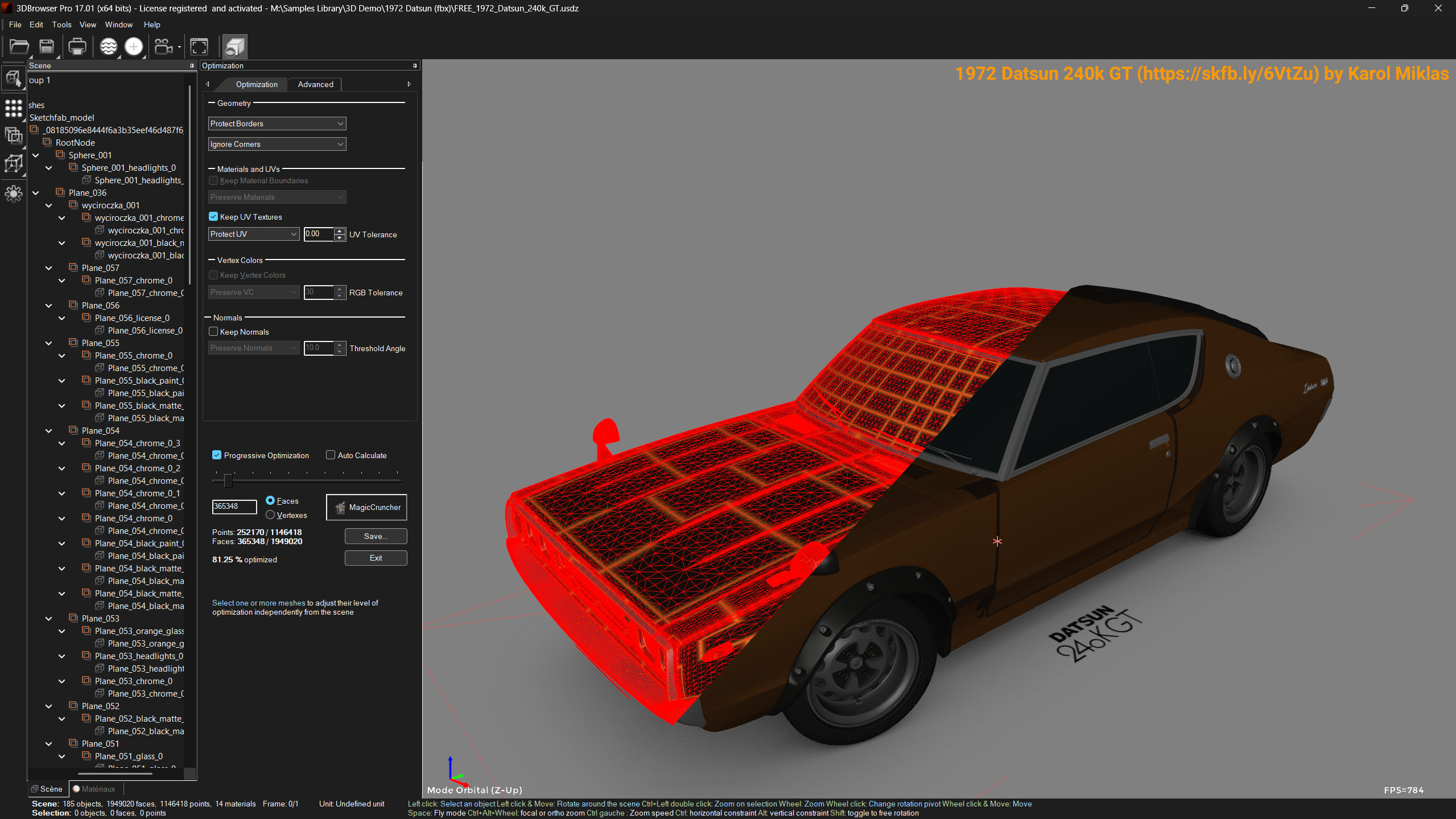 Polygon Cruncher's MagicCruncher feature automatically determines the ideal level of optimization for each object in a scene. You do not have to do anything, everything is done automatically.