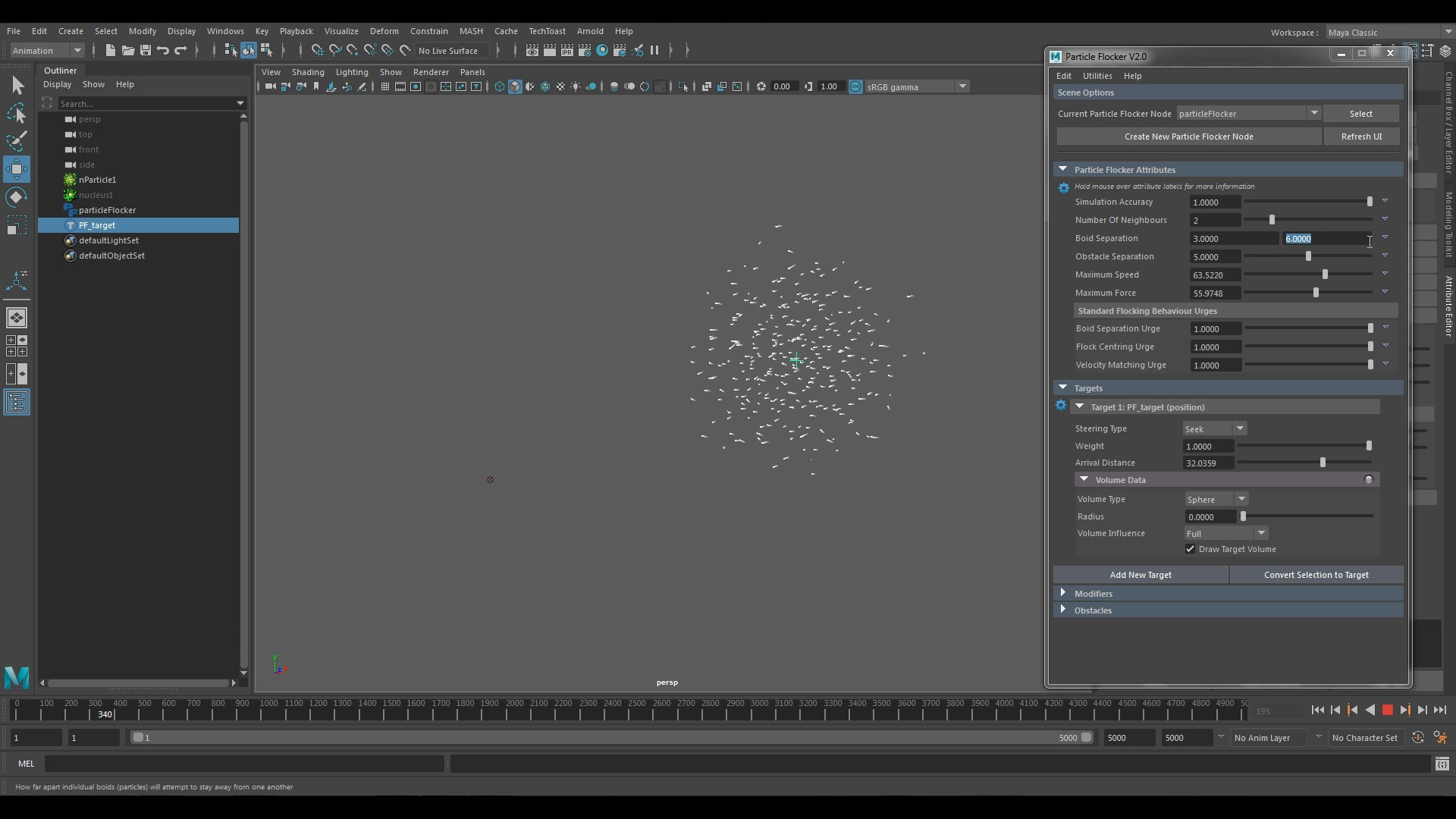 Harnessing the power of Maya's dynamics systems, Particle Flocker utilizes a force field system, allowing animators to apply flocking behavior to any particle-based system in Maya. Particle Flocker is one of the most versatile and yet easy-to-use flocking systems currently available for Maya.