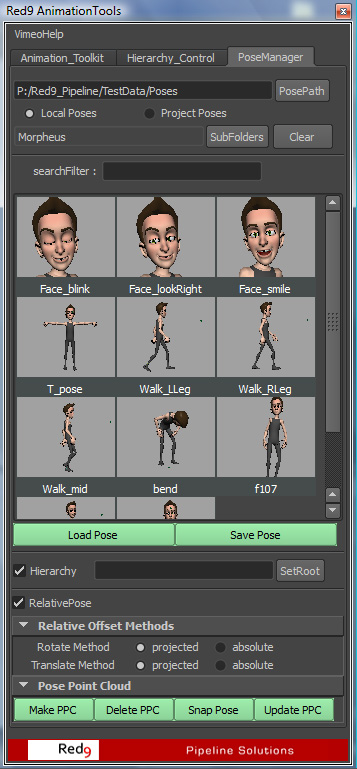 All key animation features run a filter under the hood that allows you to tailor the systems to your rig/ hierarchy, once configured the toolset hooks seamlessly to your solution, allowing animation mirroring, pose saving, rig and transform snapping, time management, key copying, attr copying and a host of other core features, all filtered internally to deal with your setup.