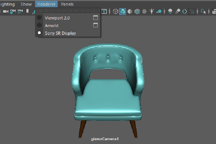 Viewer: Change any viewport panel’s renderer to "Sony SR Display" to start displaying content in real time on the Special Reality Display.
