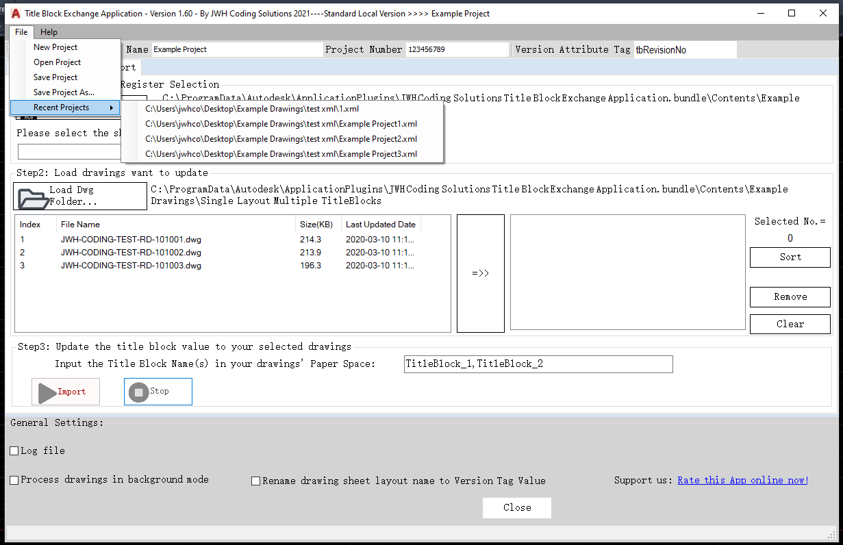 Even this tool is reliable and robust which has been tested in several major trial projects with thousands of drawings, I still strongly advise you to backup your drawings to a safe place before you use this application. Welcome your precious suggestions and feedback.