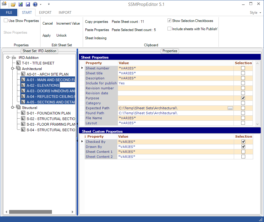 Edit properties on multiple sheets belonging to Autodesk® AutoCAD® Sheet Set Manager (SSM) or Autodesk® AutoCAD® Architecture Project Navigator (PN) Sheet Set View with ease. If you want to change properties like a revision, date, or name on two or more sheets at the same time,e SSMPropEditor is for you. Your productivity will increase, and you will save time by avoiding a lot of manual work.
