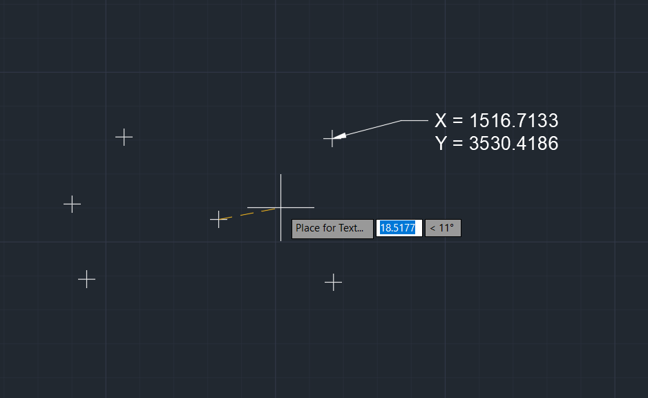 Pick a point on the screen. A Mleader will be created reporting the X and Y coordinate of the point picked. |